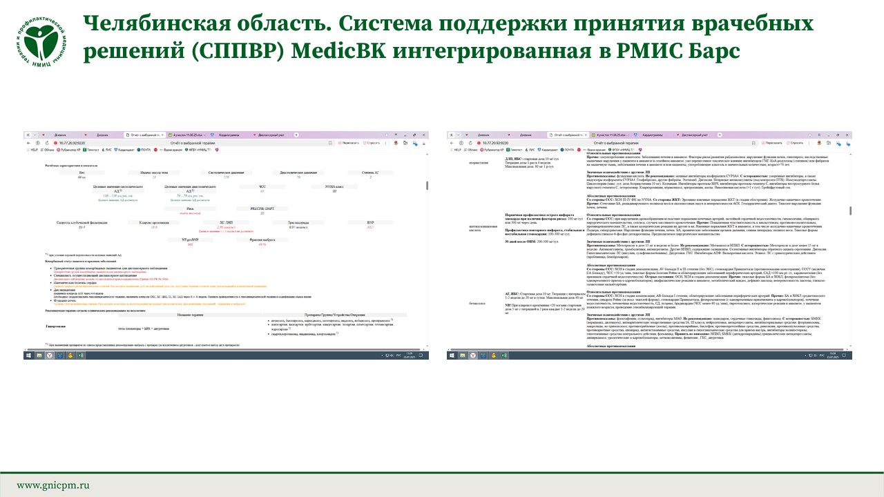 Челябинская область. Система поддержки принятия врачебных решений (СППВР) MedicBK интегрированная в РМИС Барс