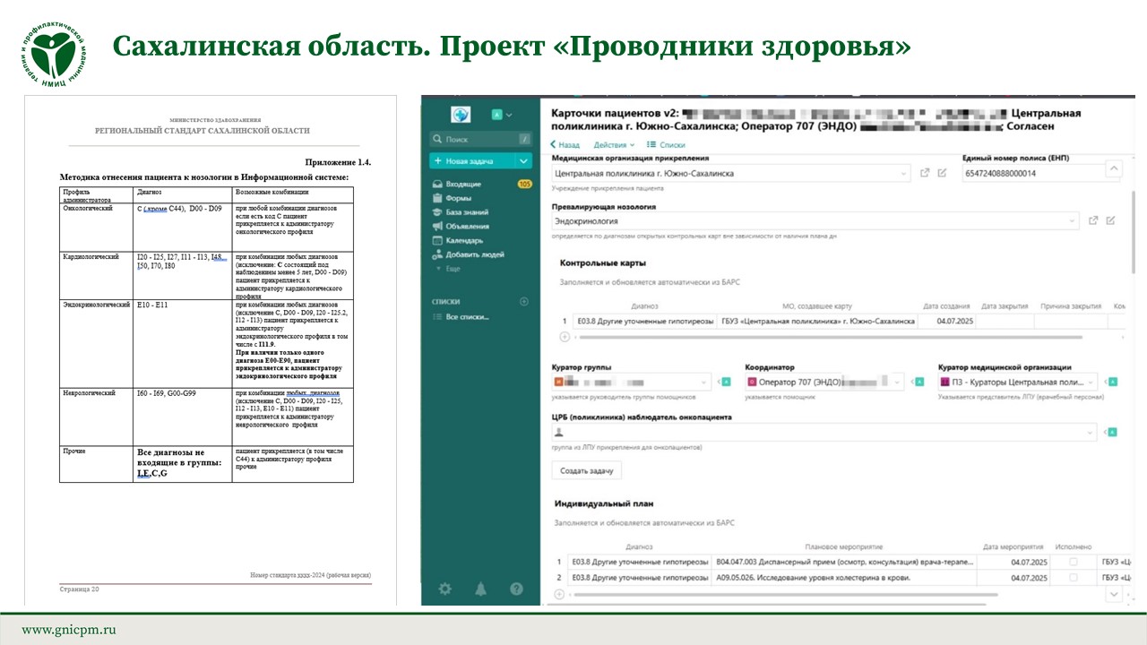 – ежедневно, в рамках трудового договора, осуществляют мониторинг и отрабатывают сведения о пациентах, закрепленных за проводником здоровья, в единой информационной системе (далее – ЕИС) и взаимодействии со старшим куратором по нозологии;
