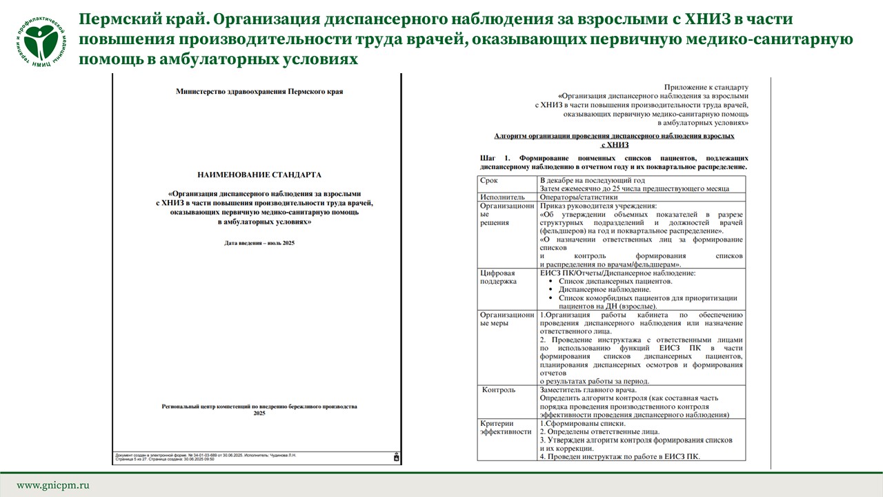 Пермский край. Организация диспансерного наблюдения за взрослыми с ХНИЗ в части повышения производительности труда врачей, оказывающих первичную медико-санитарную помощь в амбулаторных условиях