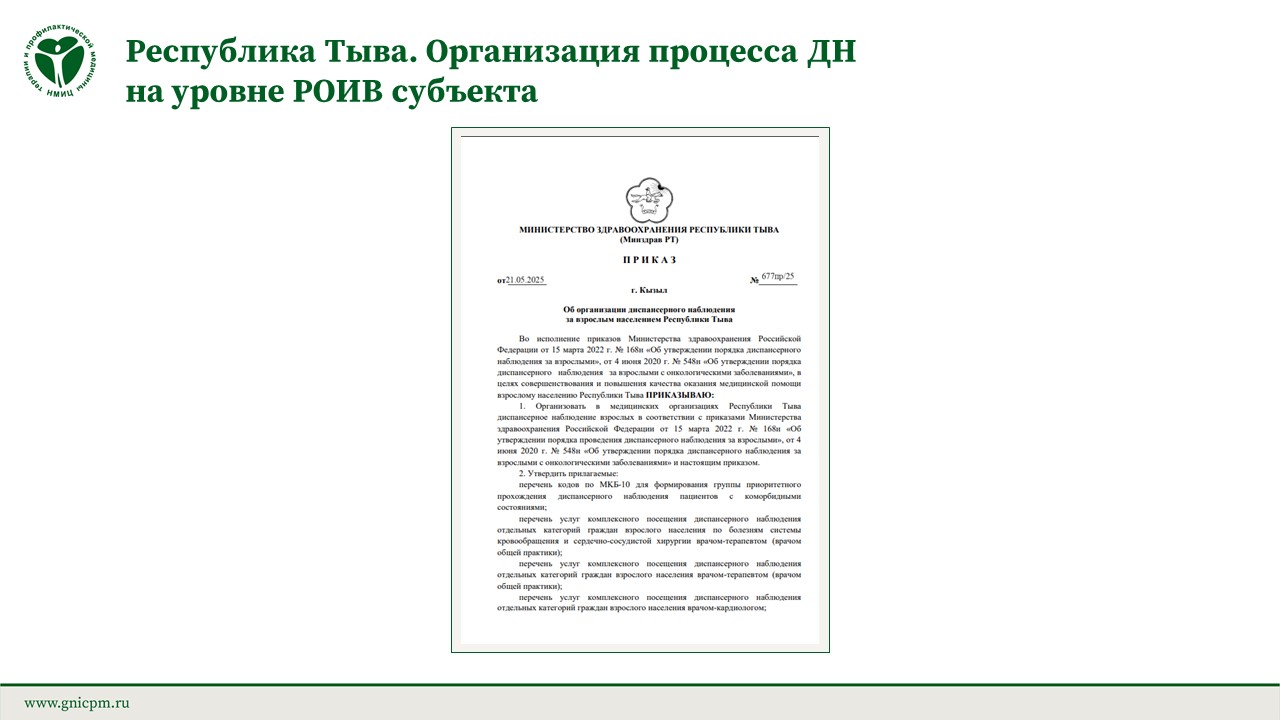 При методической поддержке НМИЦ ТПМ разработан и утвержден Порядок ДН за взрослым населением.