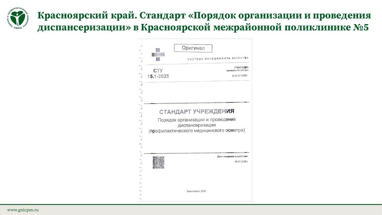 Красноярский край. Стандарт «Порядок организации и проведения диспансеризации» в Красноярской межрайонной поликлинике №5