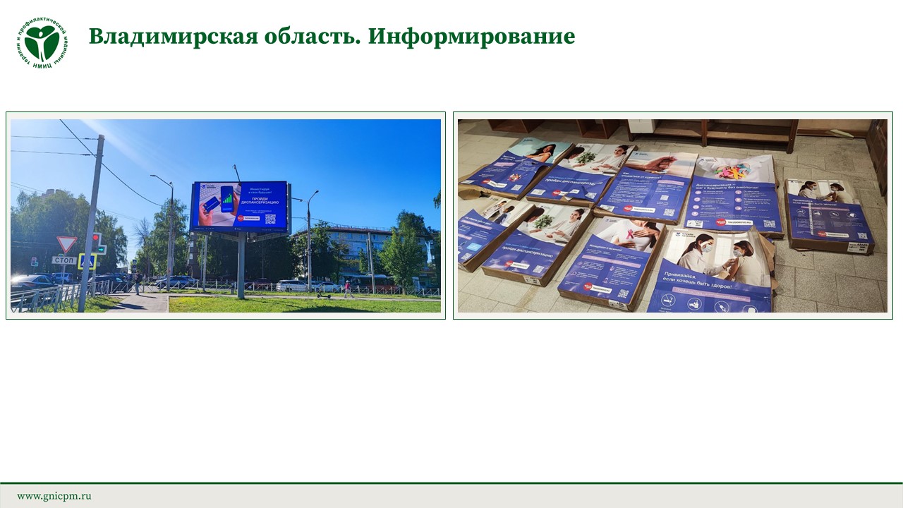 Кроме того, РОИВ получены места на электронных билбордах г.Владимира для размещения агитационных материалов о необходимости прохождения ПМО и ДОГВН